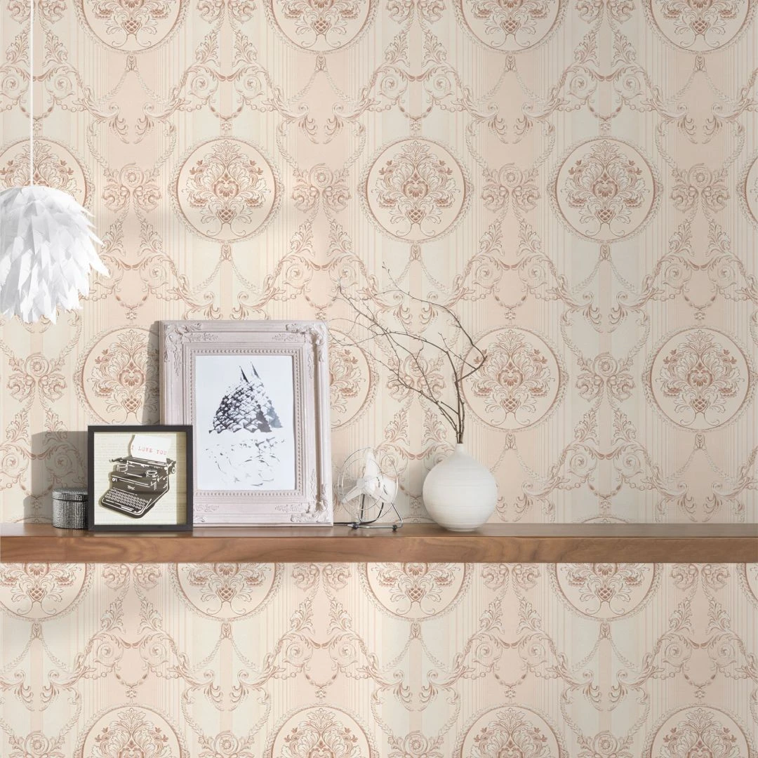 A.S Création Hermitage 10 Papier peint baroque – Papier peint à rayures Rosé, cuivre