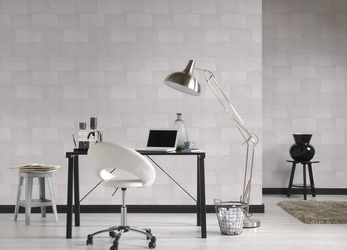 A.S. Creation AS Creation Titanium 3 – Papier Peint Motif Carrelage – Brillance Métallique – Gris Blanc – 1005 X 53 Cm