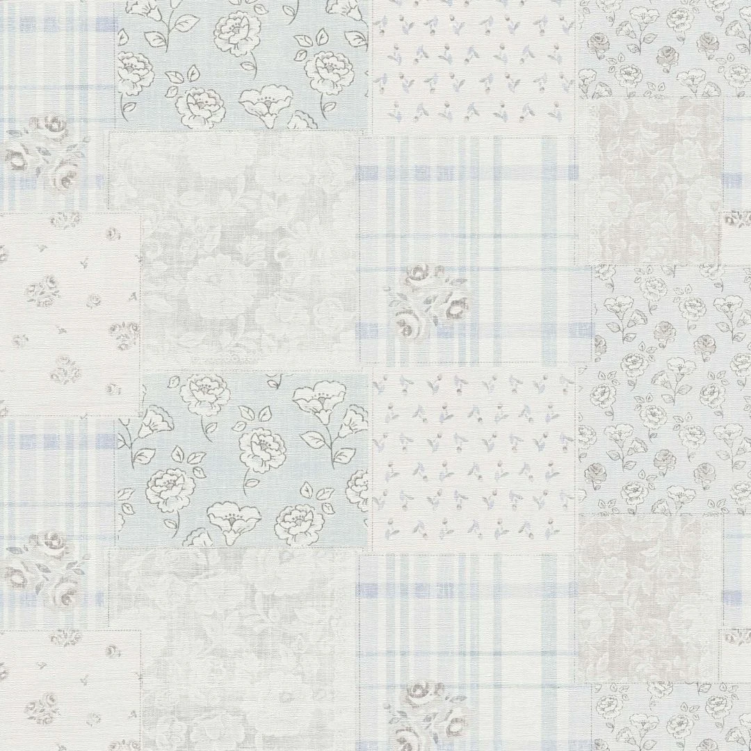 Papier peint à fleurs bleu gris – papier peint intissé maison de campagne A.S. Création – mat et légèrement structuré