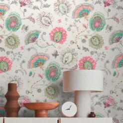 papier peint fleurs coloré – papier peint fleurs – papier peint salon nature blanc – exotique